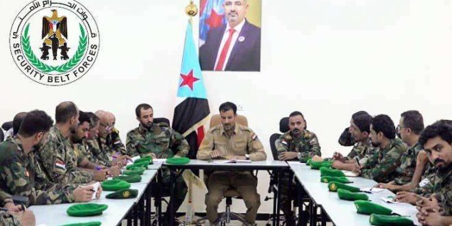 العميد الربيعي يترأس اجتماعاً لقيادة قوات الحزام الأمني بعدن