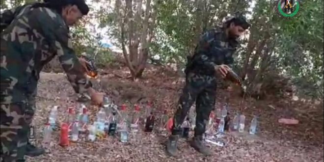 قوات الحزام الأمني تتلف كمية من الخمور المهربة بلحج