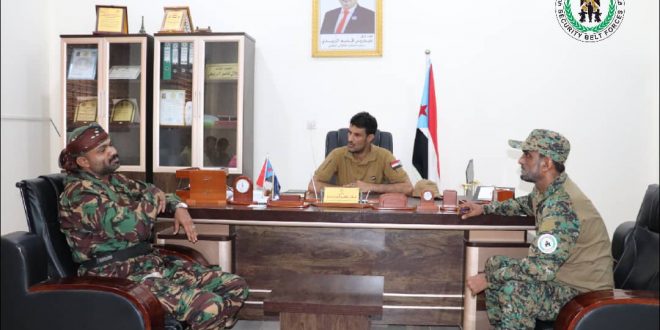 التقى العميد جلال ناصر الربيعي اركان قوات الحزام الأمني قائد حزام عدن, اليوم قائد قوات الحزام الأمني محافظة أبين العميد حيدره السيد بمكتبه في معسكر الشوبجي بمديرية خورمكسر.