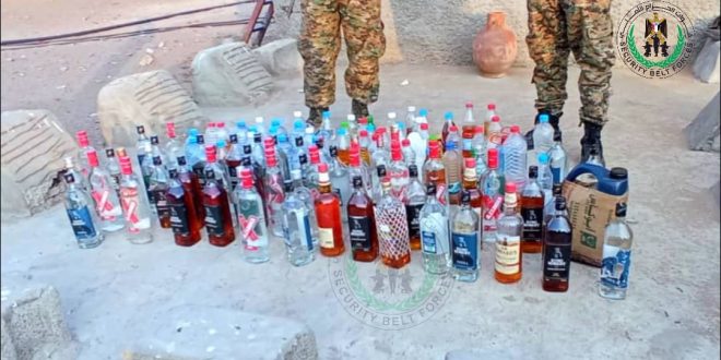 أتلفت قوات الحزام الأمني قطاع الحسيني في محافظة لحج، اليوم الأربعاء، كميات من الخمور ،تم ضبطها باوقات مختلفة، خلال عملية التفتيش في نقطة الحسيني المدخل الشمالي لمدينة الحوطة.