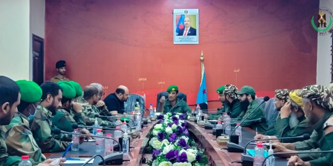 ترأس العميد جلال ناصر الربيعي اركان قوات الحزام الأمني قائد حزام عدن ، اليوم، اجتماعًا بمدراء الإدارات العامة لقوات الحزام الأمني في مقر القيادة العامة بمعسكر الشعب.