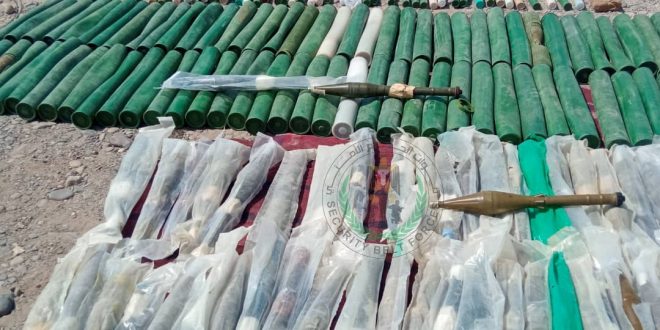 واكدت بأن كمية السلاح المضبوط مكون من قذائف أر بي جي ،وحشوات قذائف أر بي جي،وعدد من قطع السلاح نوع آلي صيني الصنع ،وكمية من ذخائر سلاح آلي، ونوهت انه سيتم إحالة المتورطين بعملية التهريب مع المضبوطات الى جهات الاختصاص لٱستكمال الإجراءات القانونية بحقهم .