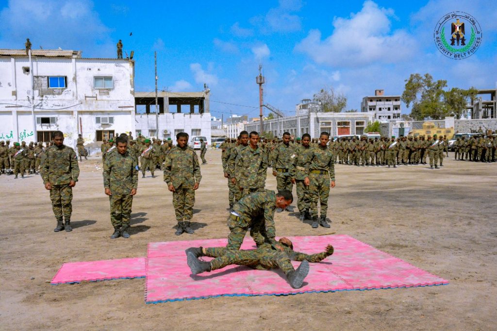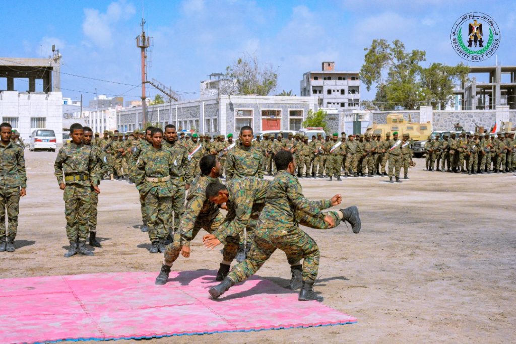 قوات الحزام الأمني بعدن تحتفي بتخرج الدفعة التاسعة مستجدين دفعة “الشهيد محمد المرهبي”