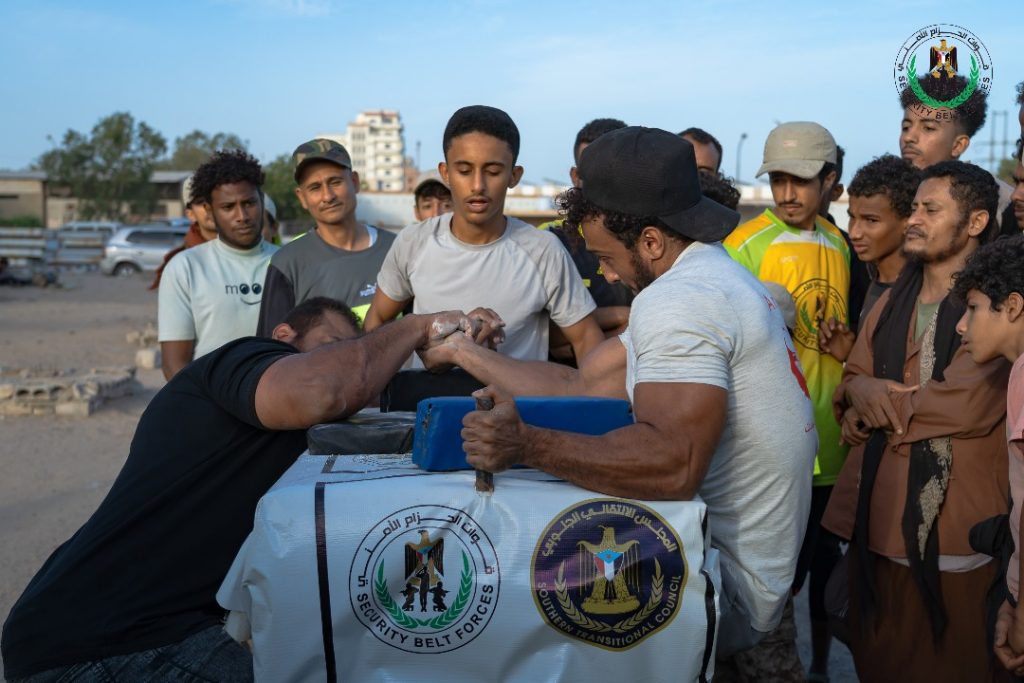 وفي منافسات الرست صراع الذراعين، فاز لاعب حزام عدن على منافسه لاعب الدائرة الصحية ،ويتأهل هو الاخر إلى المباراة النهائية .