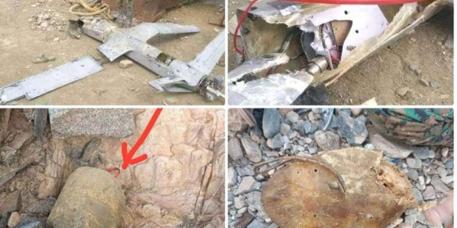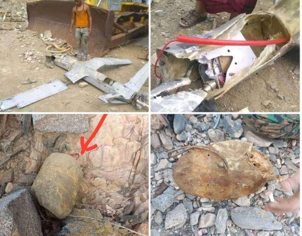 حزام أبين يكشف أن الطائرة الحوثية المسيرة التي سقطت قرب مشروع (طريق باتيس – رصد) كانت مفخخة