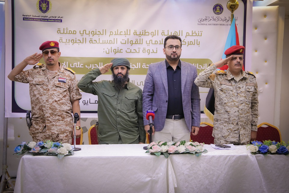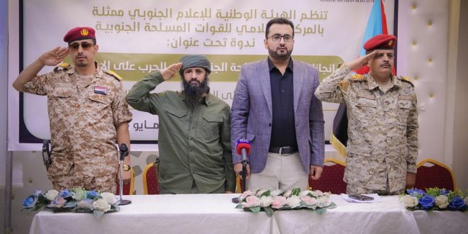 المركز الإعلامي العسكري بالهيئة الوطنية للإعلام الجنوبي ينظم ندوة عن إنجازات قواتنا المسلحة الجنوبية في حربها على الإرهاب