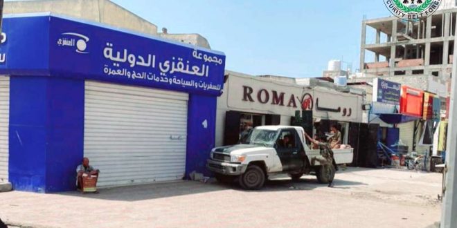 قوات الحزام الأمني تُغلق (57) مكتب من مكاتب السفريات المخالفة بالعاصمة عدن