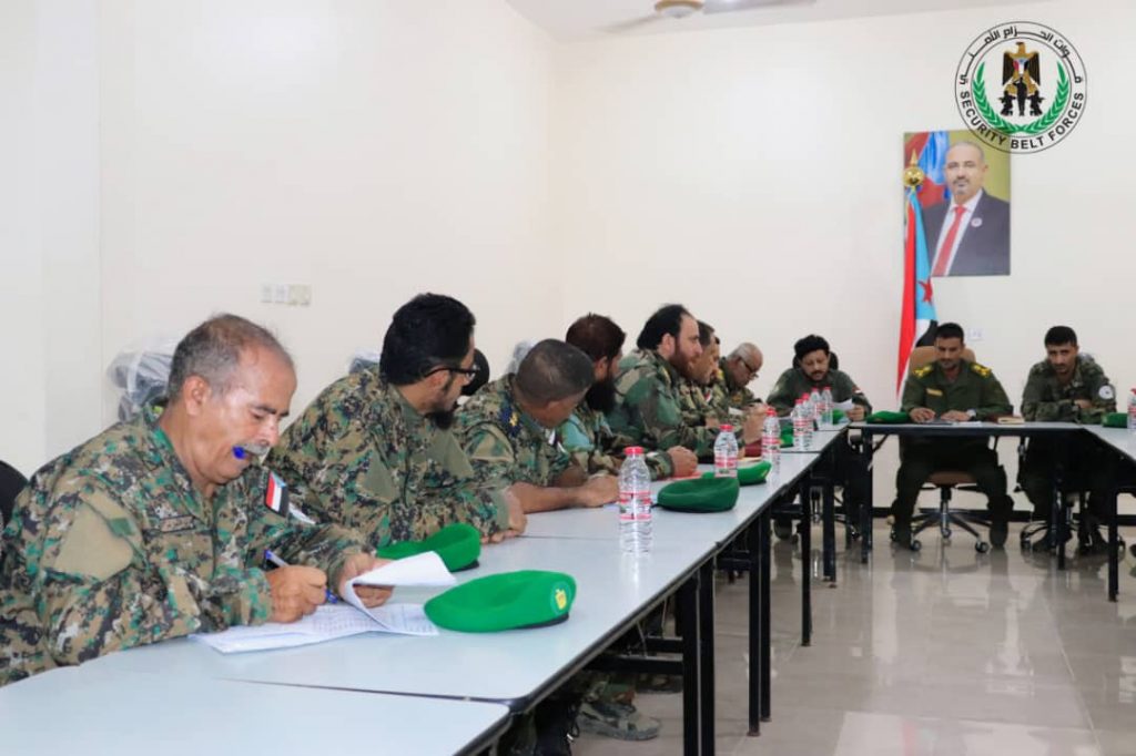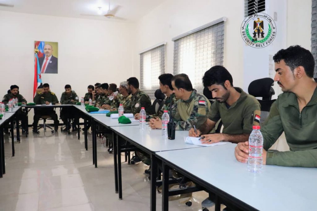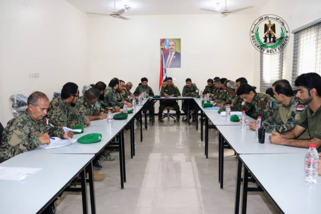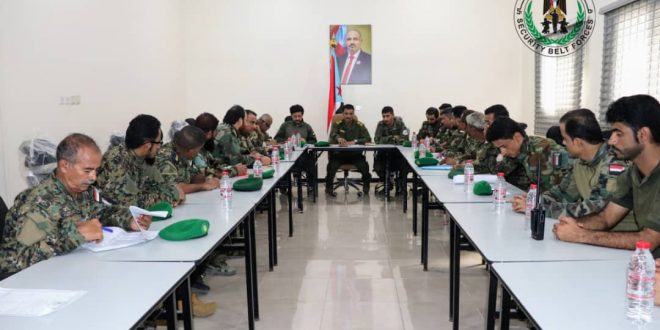 العميد الربيعي يترأس الاجتماع الدوري بقادة ومدراء قوات الحزام الأمني بالعاصمة عدن