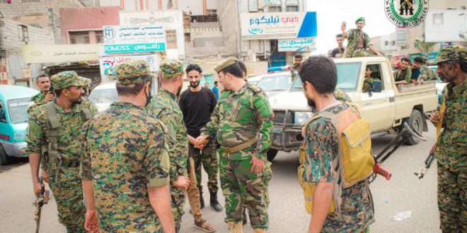 قوات الحزام الأمني بعدن تدشن حملة أمنية واسعة في مديرية الشيخ عثمان