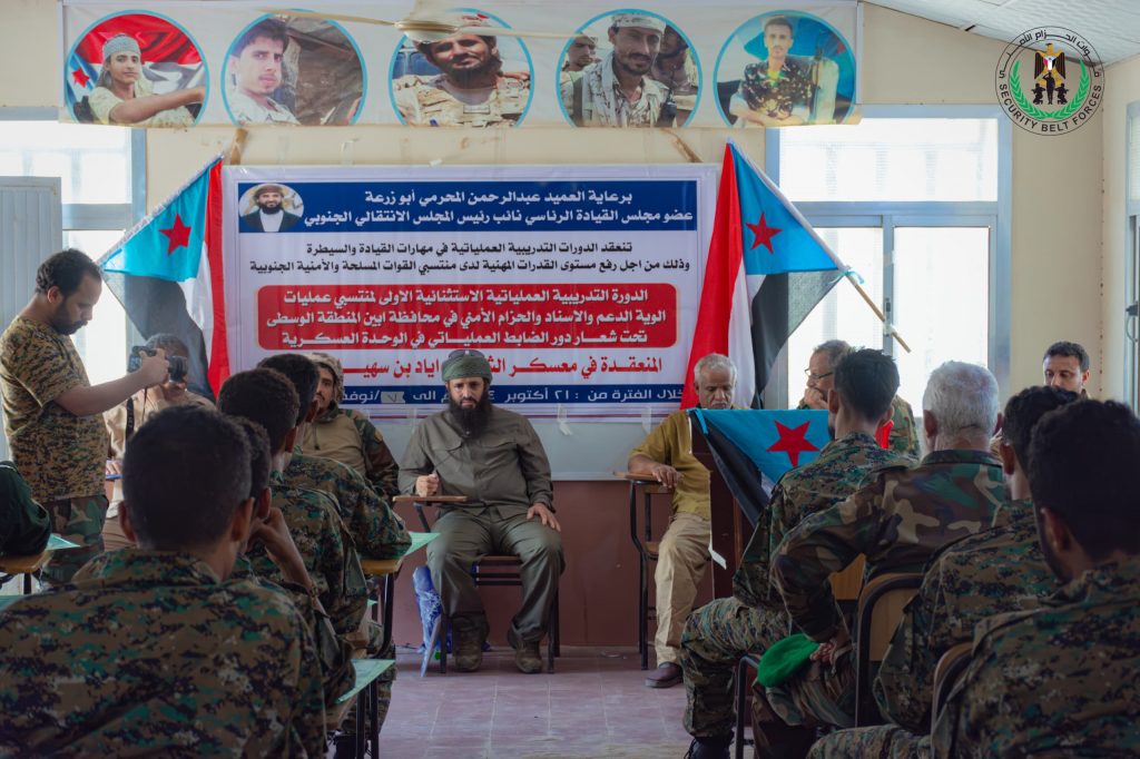 دشنت صباح اليوم الاثنين في العاصمة عدن ،الدورة التدريبية العملياتية الاستثنائية الاولى لمنتسبي الوية الدعم والاسناد والحزام الامني في المنطقة الوسطى محافظة ابين التي تقام برعاية العميد عبدالرحمن المحرمي ابو زرعة عضو مجلس القيادة الرئاسي نائب رئيس المجلس الانتقالي الجنوبي، واشراف العميد محسن الوالي القائد العام لقوات الحزام الأمني.