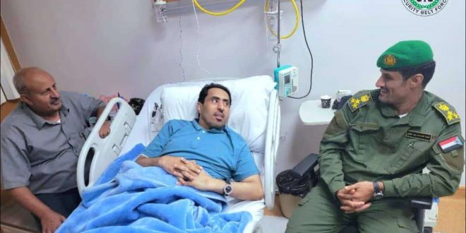 اطمأن العميد جلال ناصر الربيعي، اركان قوات الحزام الأمني، قائد قوات الحزام الأمني بالعاصمة عدن اليوم، على صحة وزير الشباب والرياضة، الأستاذ نايف البكري، الذي يرقد في إحدى مستشفيات العاصمة عدن، عقب إصابته بذبحة صدرية.
