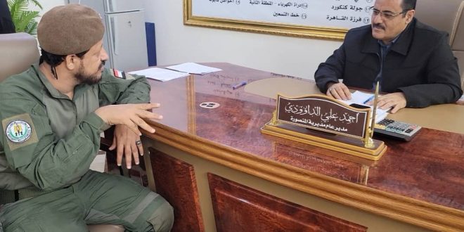التقى مدير عام مديرية المنصورة بالعاصمة عدن، أحمد علي الداؤودي، في مكتبه، اليوم “الأثنين”، أركان قوات الحزام الأمني بالعاصمة، العقيد عمار سالم السرحي، كرس لمناقشة الأوضاع الأمنية في المديرية.