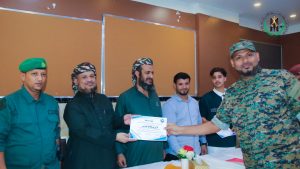 حضر ختام الدورة العميد عرفات سعيد عبدالله مدير الادارة العامة للتوجيه المعنوي لقوات الحزام الأمني، والعميد وضاح قاسم الداعري مدير العلاقات العامة ،ورشدي العمري مدير المركز الإعلامي .