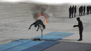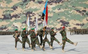 وقدّم المتخرجون من الدورة التدريبية عرضًا عسكريًّا مهيبًا، عرضوا فيه أهم المهارات، التي اكتسبوها خلال الدورة، التي تلقوا فيها التدريبات في مجالات متعددة؛ أبرزها الخطوات النظامية والتكتيك والمهارات الميدانية، والتدريب الناري والهندسة، والإسعافات الأولية.