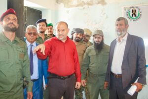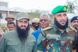 رافق العميد الوالي خلال زيارته، العميد دكتور عبد السلام الجمالي، رئيس الفريق الأمني بمكتب النائب عبد الرحمن المحرمي، واللواء دكتور عمر البكري، عضو الفريق الأمني بمكتب النائب، ورشدي العمري، مدير الإدارة الإعلامية في الحزام الأمني، وعدد من ضباط قوات الحزام الأمني.