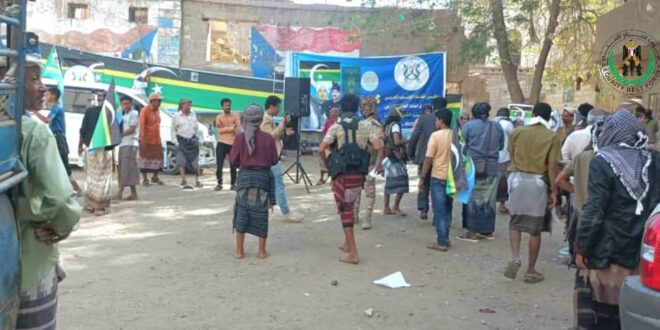 الحزام الامني بلحج يضبط عناصر مسلحة مندسة وسط مظاهرة سلمية ويحذر من أي محاولات لزعزعة الأمن