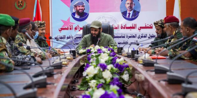 جاء ذلك خلال ترؤسه اليوم اجتماعًا لأركانات التوجيه المعنوي للحزام الأمني ، والذي عُقد في مقر القيادة العامة بمعسكر الشعب، بحضور مدير الإدارة العامة للتوجيه المعنوي العميد عرفات سعيد عبدالله وعدد من قادة الأركان.