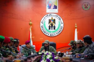 وفي ختام الاجتماع، وجّه العميد الوالي بضرورة تعزيز آليات التنسيق بين مختلف الجهات ذات العلاقة، وتكثيف الجهود لضمان تحقيق أعلى مستويات الانضباط والجاهزية، بما يواكب طبيعة التحديات الراهنة ويعزز من كفاءة الأداء المؤسسي لقوات الحزام الأمني.