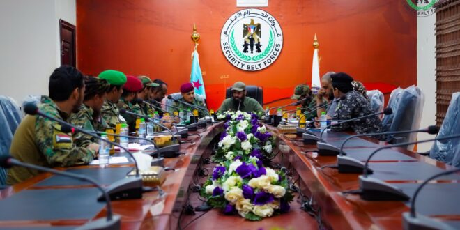 العميد الوالي يترأس اجتماعًا موسعًا بقيادة مدراء الإمداد والتموين بقوات الحزام الأمني