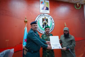وفي ختام الاجتماع، قام العميد الوالي بتكريم قيادة الموارد البشرية،ومدراء الادارات في الأحزمة الأمنية، بمنحهم شهادات تقديرية عرفانًا بدورهم الفاعل وجهودهم النوعية في تعزيز البنية المؤسسية لقوات الحزام الأمني