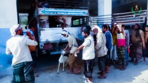 حيث قامت الفرق الميدانية التابعة للهيئة بقيادة احمد فضل عبدالله توزيع الأضاحي في مقر قيادة قوات الحزام الأمني بالمحافظة، ومديريات المنطقة الوسطى، تحت إشراف القائد العام لقوات الحزام الأمني، العميد محسن بن عبد الله الوالي، وأركان قوات الدعم والإسناد قائد اللواء الثالث دعم وإسناد، العميد نبيل المشوشي.