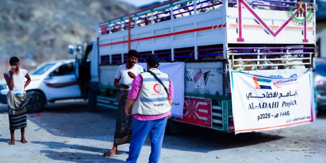 هيئة الهلال الأحمر الإماراتي تدشن توزيع أضاحي العيد على أسر شهداء محافظة أبين