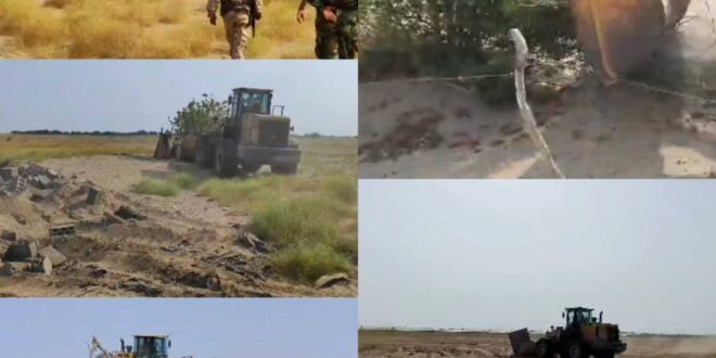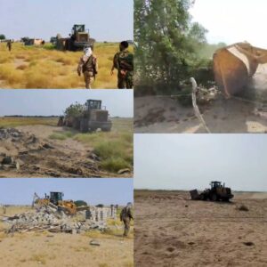 عدن.. إزالة واسعة لبناء عشوائي طال أراضي المرحلة الثانية من مشروع الطاقة الشمسية في بئر أحمد