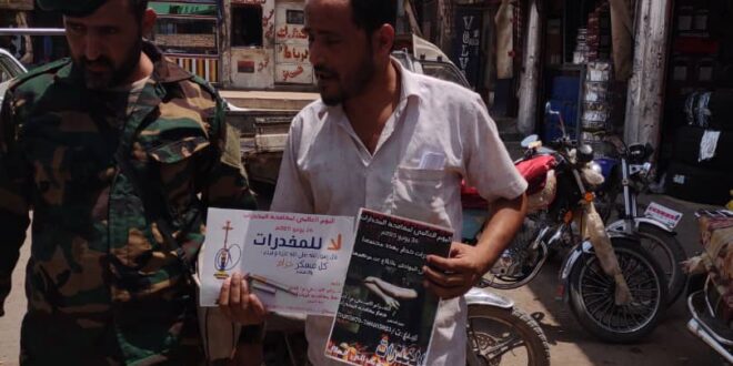 نفذت قوات الحزام الأمني بمحافظة لحج حملة توعوية شاملة حول مخاطر تعاطي وترويج المخدرات وذلك تزامنا مع اليوم العالمي لمكافحة المخدرات الذي يصادف السادس والعشرين من يونيو من كل عام وبتوجيهات من قائد قوات الحزام الأمني في المحافظة العميد الركن حسين خالد السعيدي وباشراف مباشر من اركان قوات الحزام العقيد توفيق الهابون والمقدم ثابت العلوي ركن عمليات قوات الحزام