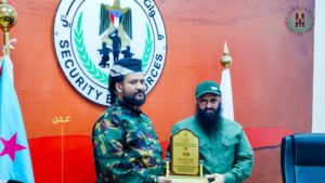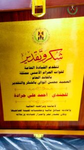 ومنح العميد الوالي كلاً من المساعد سالم منصور المرقشي والجندي أحمد علي جرادة دروعاً تذكارية ومبالغ مالية، تشجيعاً لهما على هذا الموقف الإنساني النبيل، وتحفيزاً لبقية أبطال قوات الحزام الأمني للاقتداء بسلوكهما.
