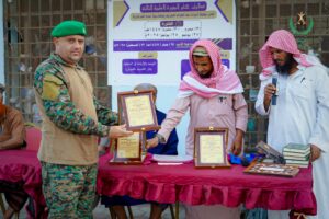 وجرى تنظيم الحفل الختامي بحضور عدد من القيادات الدينية والأمنية، برعاية ودعم من إدارة الإرشاد الديني في قوات الحزام الأمني، ومؤسسة النقيب التنموية الخيرية، والشيخ عبد الله بن مرعي، والشيخ محمد بن عبد القوي اليافعي.