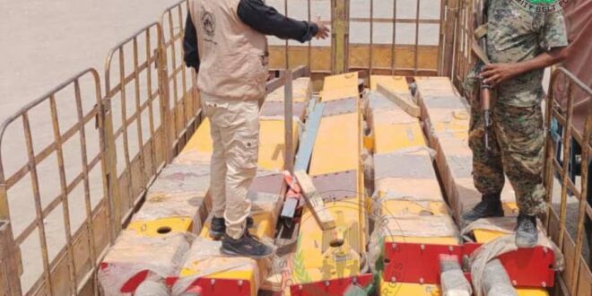 وأضاف المصدر أن التحقيقات الأولية أظهرت أن الرافعات جرى تحميلها من أحد الهناجر في منطقة الرباط، وكانت مهيأة للنقل إلى صنعاء ومنها إلى الحديدة، بحسب اعترافات سائق القاطرة ومرافقيه.