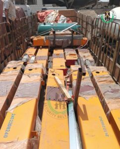 قوات الحزام الأمني بلحج تضبط رافعات مخصصة لإنزال حاويات السفن كانت في طريقها إلى الحديدة