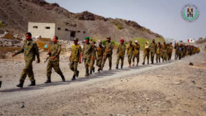 قوات التدخل السريع بالحزام الأمني تنفذ مسيرا عسكريا بأبين