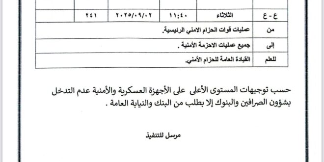 وأوضحت القيادة أن هذه التوجيهات جاءت في إطار تنظيم العمل الأمني، ومنع أي تجاوزات، وتحديد المهام الموكلة للوحدات بما يضمن انضباط الأداء وتعزيز الثقة بين المواطنين والمؤسسات الرسمية.