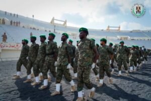 وشارك في العرض آليات عسكرية بينها طائرات مسيّرة.