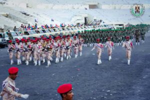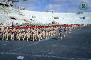 وشهد الميدان عرضاً مهيباً نفذته الوحدات القتالية المشاركة، عكست من خلاله مستوى الجاهزية والانضباط العسكري والروح القتالية العالية التي تتحلى بها قوات الدعم والإسناد والحزام الأمني في محافظة أبين.