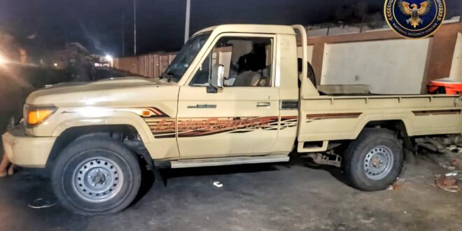 تمكنت قوات طوق العاصمة عدن التابعة للأمن الوطني من ضبط مركبة مسروقة نوع (شاص)، كانت قد عمم عنها سابقا بناء على بلاغ صادر عن عمليات الأمن الوطني الرئيسية