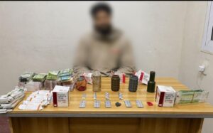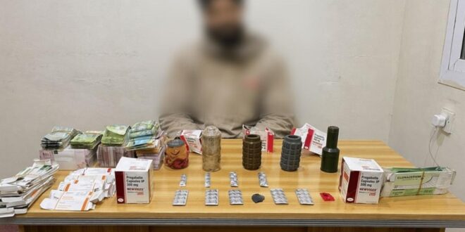 وأوضح الجعدني أن المتهم، ويدعى (أ – م – أ – ع)، تم ضبطه متلبسا وبحوزته كمية من الحشيش المخدر، وكميات من الحبوب المخدرة، بالإضافة إلى مجموعة من القنابل المتفجرة.