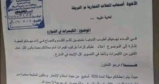 قيادة اللواء أول دعم والاسناد تُلزم المحلات التجارية بالبريقة تركيب كاميرات مراقبة عدن / القسم الإعلامي بقوات الدعم والإسناد اصدرت قيادة اللواء الاول دعم واسناد تعميما بإلزام المحلات التجارية في مديرية البريقة بتركيب كاميرات مراقبة امام المحلات ومن يتخلف عن ذلك سيتم اتخاذا اجراءات ضده . وقالت وثيقة تم تعميمها من قبل اللواء الاول على المحلات التجارية ان عليهم الزاما …
