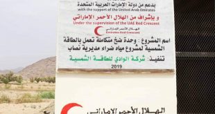 “بدعم إماراتي” افتتاح وحدة متكاملة لضخ المياه تعمل بالطاقة الشمسية بمديرية نصاب في شبوة. شبوة – 7 يوليو 2019م تقرير / مروان الخليفي تصوير / عمار نميش بدعم من دولة الإمارات تم صباح الامس افتتاح وحدة متكاملة لضخ المياه تعمل بالطاقة الشمسية في منطقتي ضرا ومعربه بمديرية نصاب في محافظة شبوة اليمنية يستفيد منها أهالي المنطقتين والقرى المجاورة لهما. وأكد …