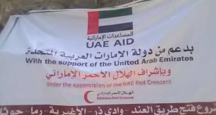 بدعم الإمارات تدشين فتح طريق (العند- ذر -الاغبري -الرماة ) بمديرية القبيطة في لحج لحج / دشن الهلال الأحمر الإماراتي مشروع فتح الطريق ( العند ـ ذر ـ الاغبري ـ الرماة ) بمديرية القبيطة محافظة لحج والتي تضررت جراء الأمطار الغزيرة التي شهدتها المديرية خلال الأسبوع الماضي ، وذلك ضمن حملة الاستجابة العاجلة التي اطلقتها دولة الإمارات لإغاثة متضرري السيول …